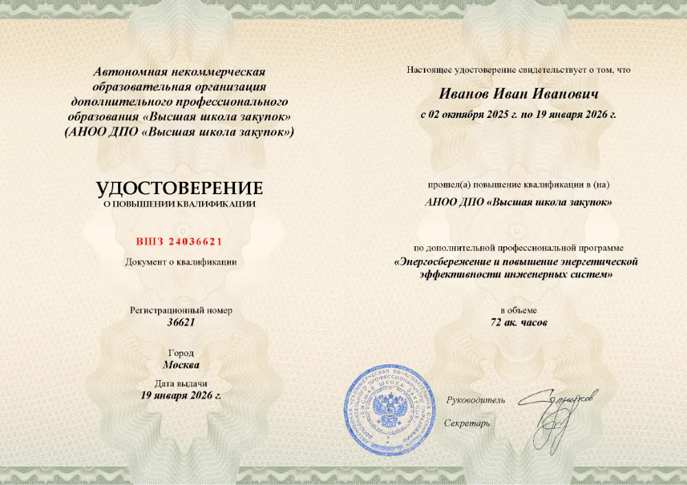 Программа повышения квалификации (72 часа) по энергосбережению и повышению эффективности инженерных систем в Москве. Освойте современные методы аудита, энергоменеджмент, инструменты оптимизации и цифровые технологии для снижения затрат в зданиях и на предприятиях.