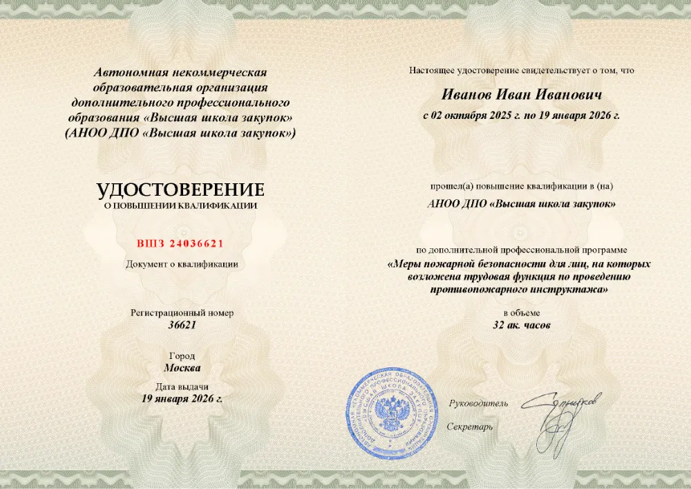 Повышение квалификации, 32 академических часа, 3 модуля: нормативно-правовые основы и обязанности инструктора, содержание и методика проведения противопожарных инструктажей, практические знания и навыки для эффективного обучения персонала. Онлайн-обучение в Москве с итоговой аттестацией.